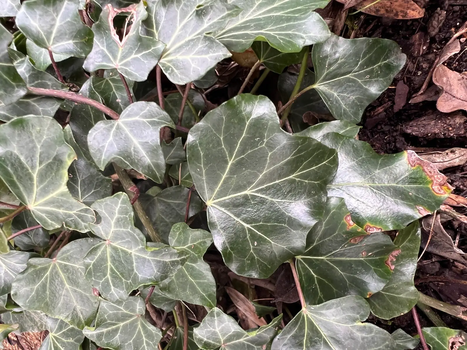 Efeu mit glänzenden Blättern und schön abgerundeten Lappen.