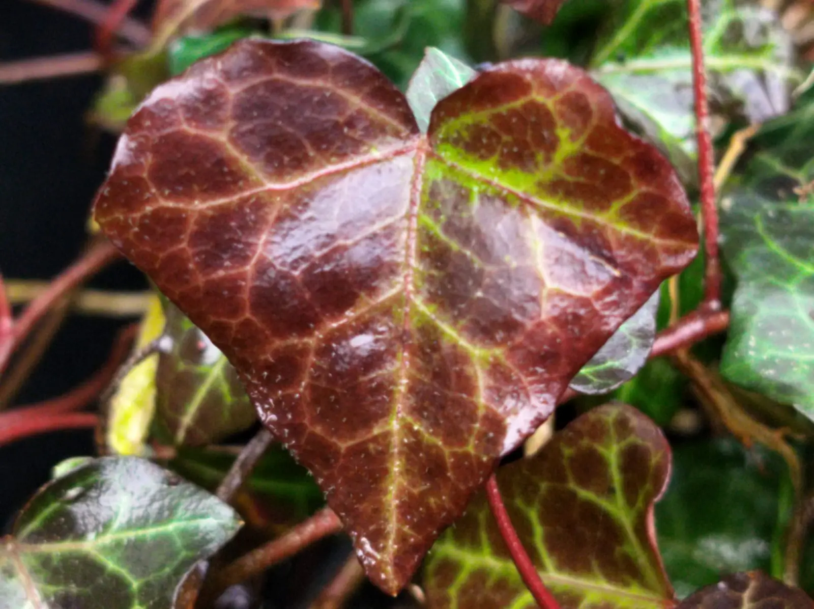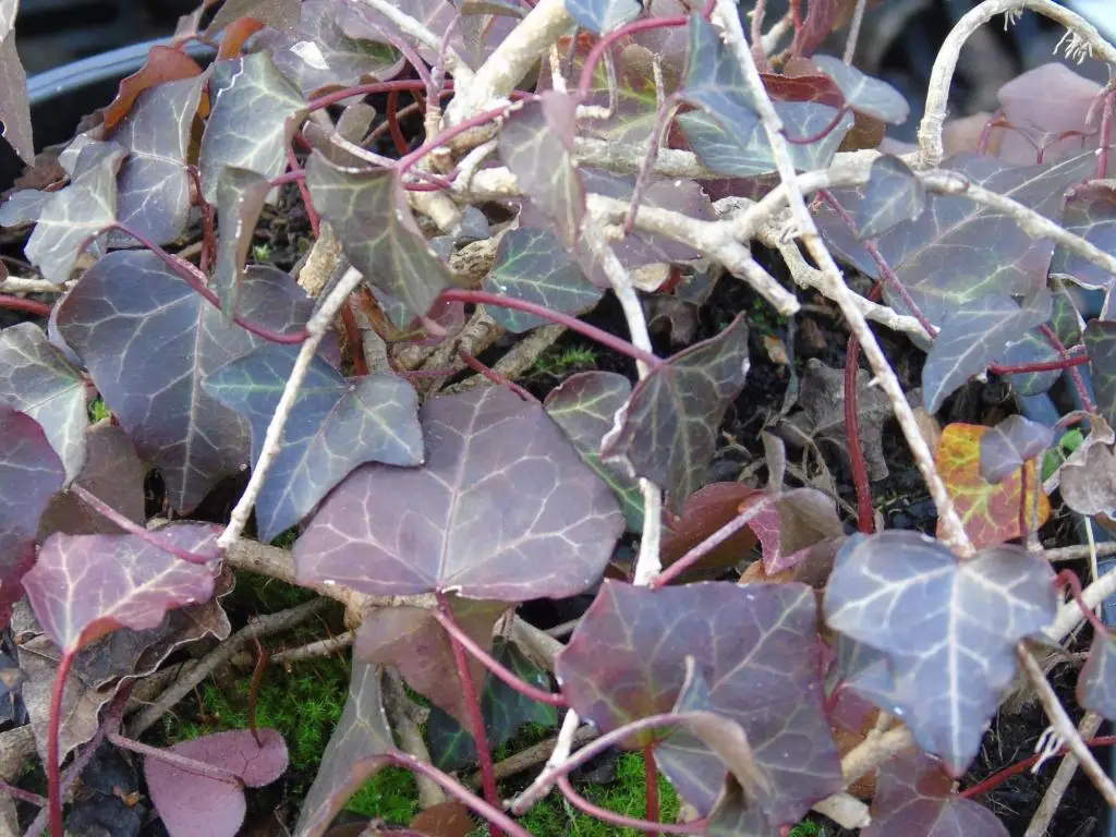 Zier-Efeu, Hedera helix ‘Armel’, ist ein Klon, der in der Natur gesammelt wurde. Er ist höchstwahrscheinlich einer der farbenprächtigsten Klone, die es gibt teuer Hedera helix. Im Winter nimmt er eine rotbraune Färbung an.