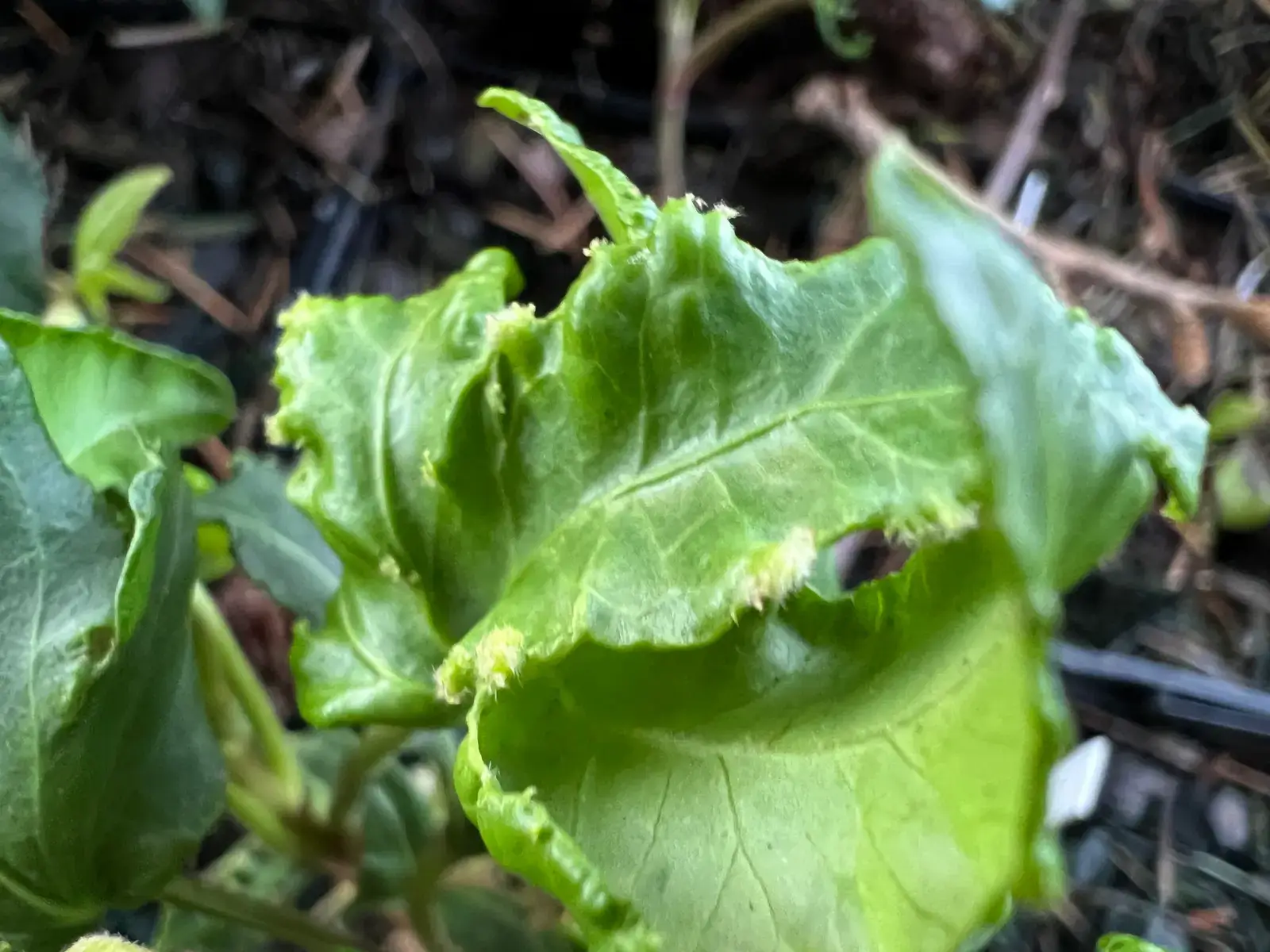 Die Blattspreite besteht aus 5 Lappen, die gewellt oder sogar verkrampft sind. Die Stängel sind gut verzweigt und haben sehr kurze Internodien.