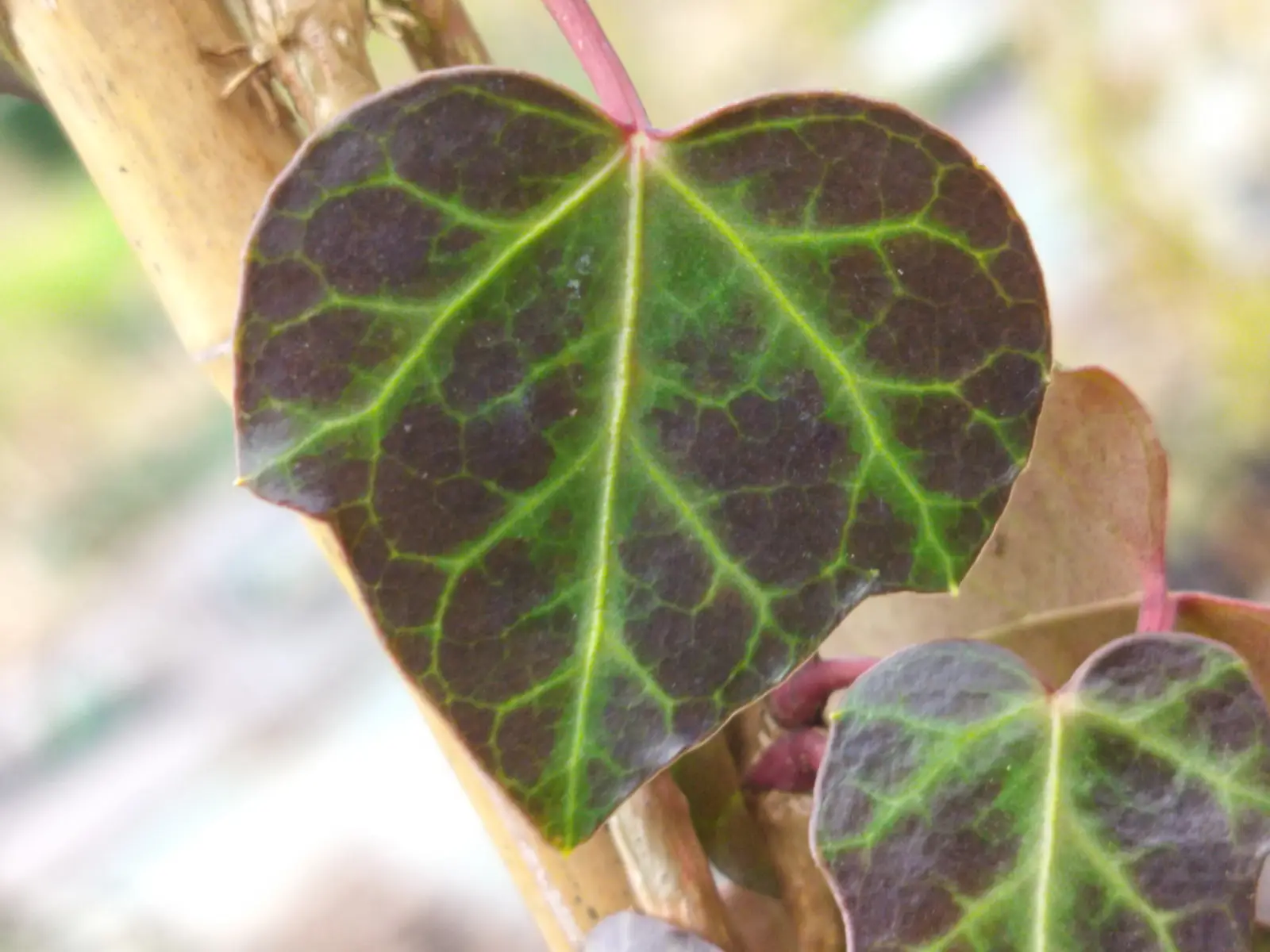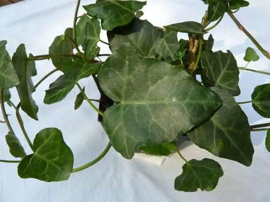 This is an ivy with small, thick, deltoid, unlobed leaves. The base is heart-shaped. The leaf blade is dark green. It takes on beautiful winter colours.