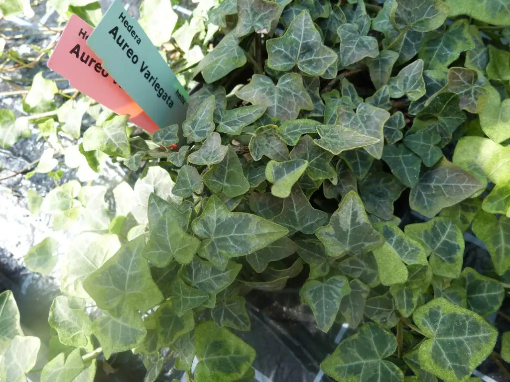 Ornamental ivy, Hedera helix ‘Aureovariegata’, is one of the oldest known variegated ivy. It was described in England around 1770.