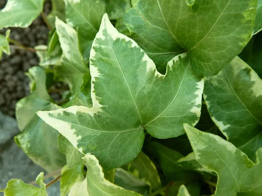 Ornamental ivy, Hedera helix ‘Bettina’, is one of the most graceful ivy with a white margin.