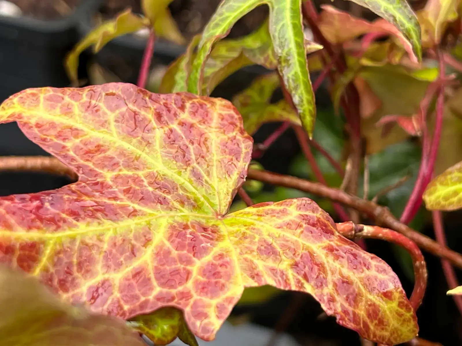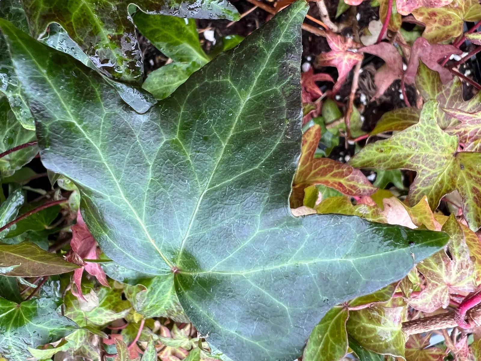 Ornamental ivy, Hedera helix ‘Camille’, is a beautiful ground cover, particularly interesting for its variations in colour depending on the season and growing conditions.