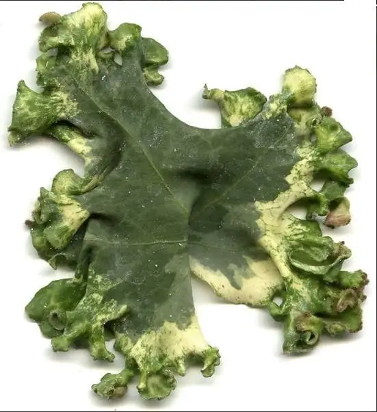 The medium-sized leaves have 5 lobes. They are attractively edged with cream. In cold weather, a pink border adds extra charm. The edges of the leaves are strongly undulating. Occasionally, growths can be found on these undulations.