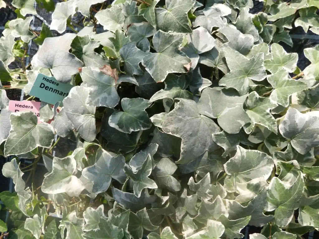 This ivy resembles ‘Silver King’, but the leaves of ‘Denmark’ are larger and more parchment-like. It forms fairly thick mats and is an interesting houseplant.