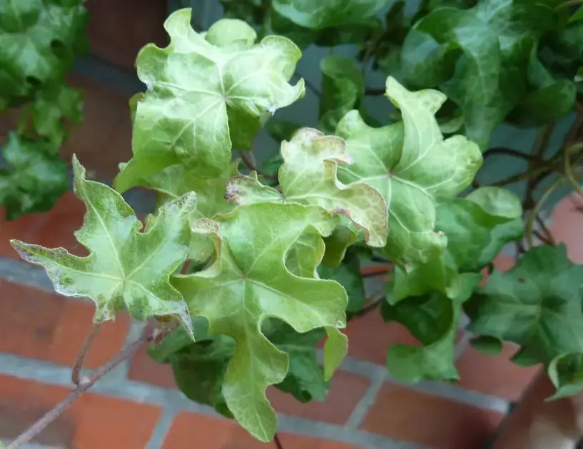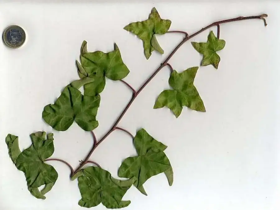 Ornamental ivy, Hedera helix ‘Dragon Claw’, It has broad, strongly undulating leaves with long petioles.