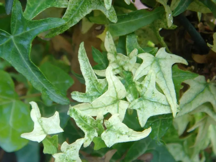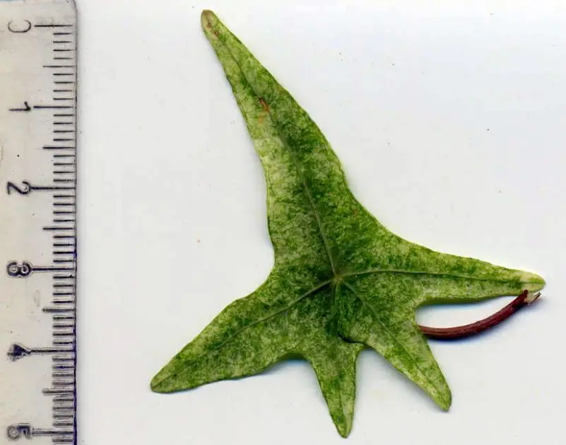 Ornamental ivy, Hedera helix ‘Frosty’, is a small ground cover plant with miniature, more or less star-shaped leaves.