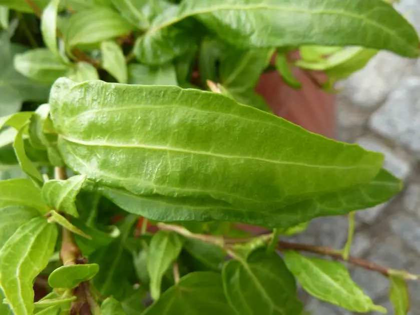 Foliage is light green in spring, turning dark green in summer. The leaves are oval, more or less lanceolate and not lobed. In winter, red veins appear in the cold.