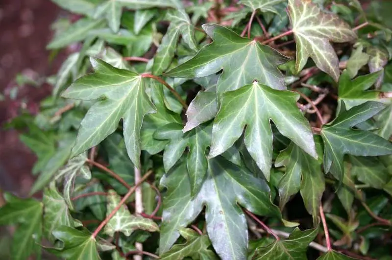 The petioles are red and clearly visible. An excellent ivy for pots, it can also be used as a climber.