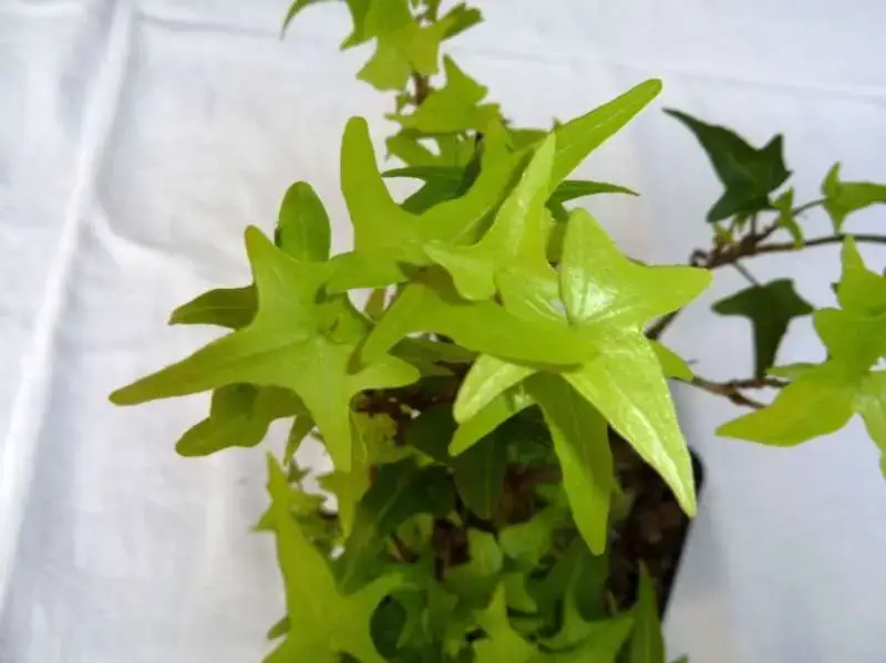 Ornamental ivy, Hedera helix ‘Lightfinger’, It is particularly attractive with its bird's-foot leaves, which are bright yellow and then turn pale green.