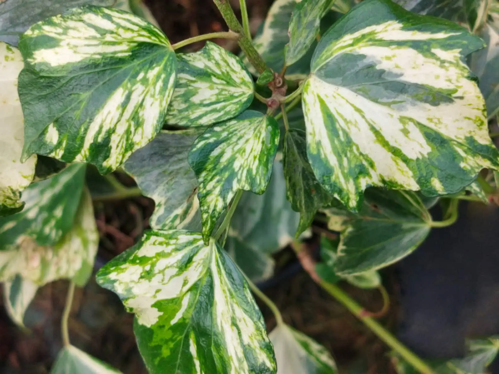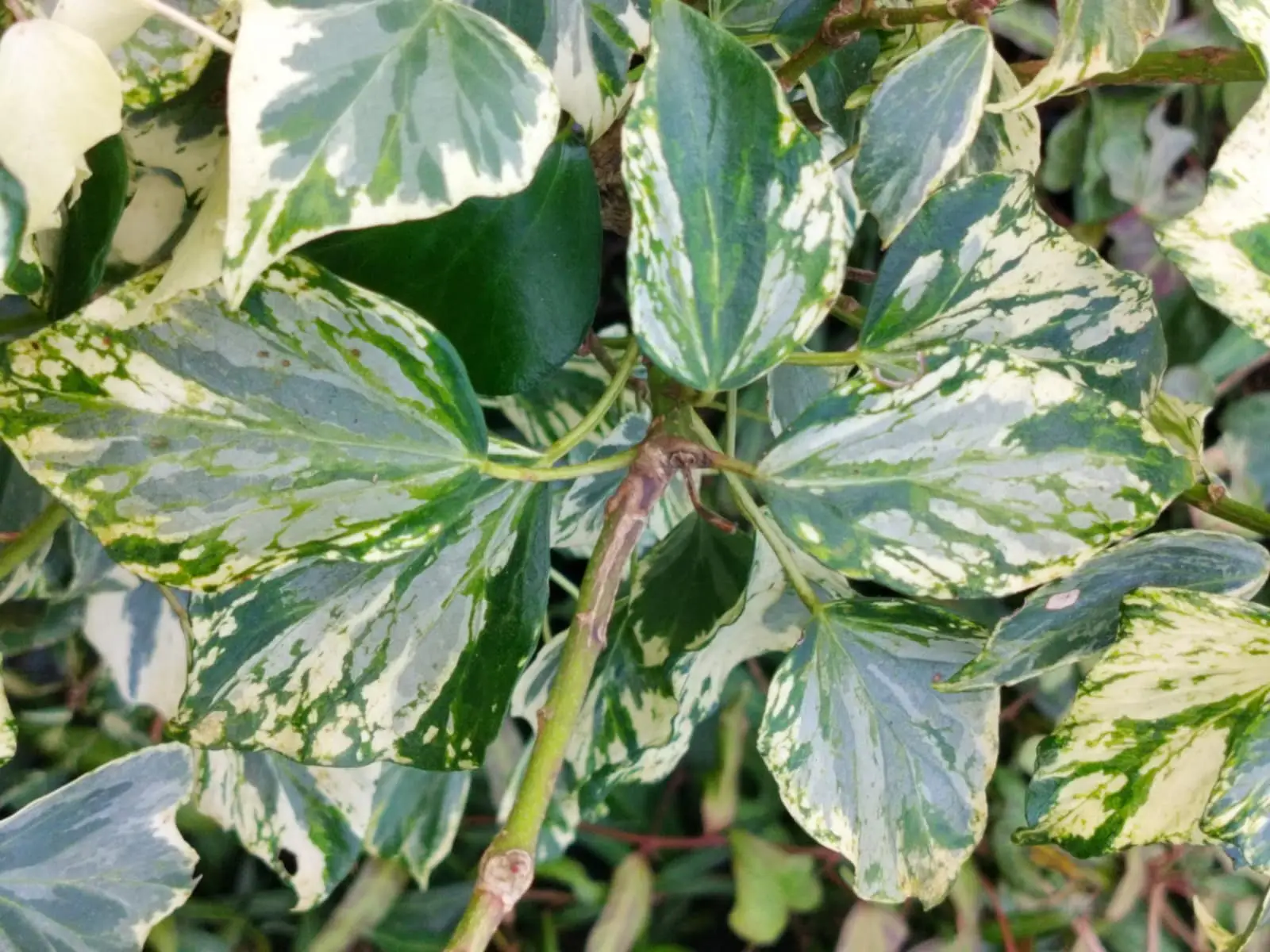 Here it is in its adult version. Hedera helix ‘Nadine’ adult forms a small, beautifully variegated bush, with shades of yellow-green and apple-green on a cream to white background.