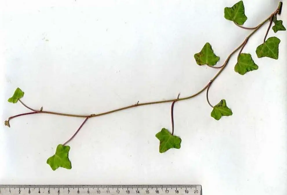 Ornamental ivy, Hedera helix ‘Renton Gold’, is an ivy plant with small, slender leaves consisting of 3 to 5 lobes on sparsely branched stems.
