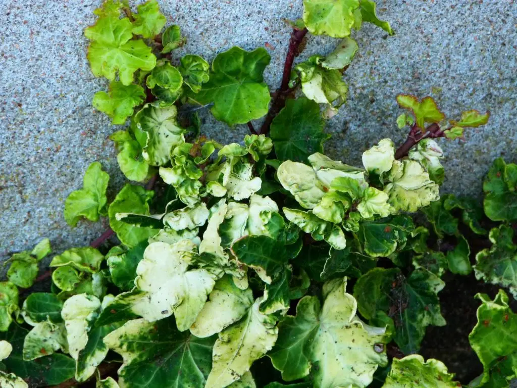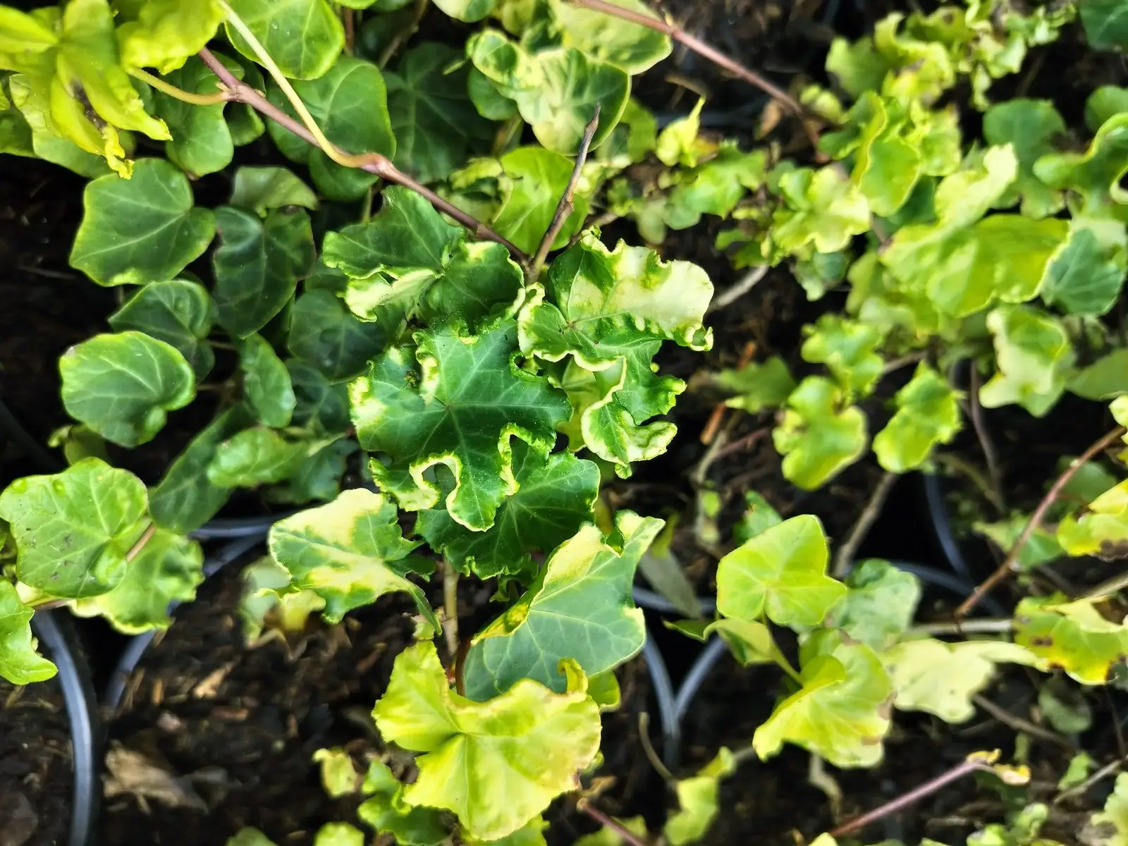 Ornamental ivy, Hedera helix Steven’, is a short-growing plant with thick, sparsely-branched stems. The leaves are wavy and curled at the margins.