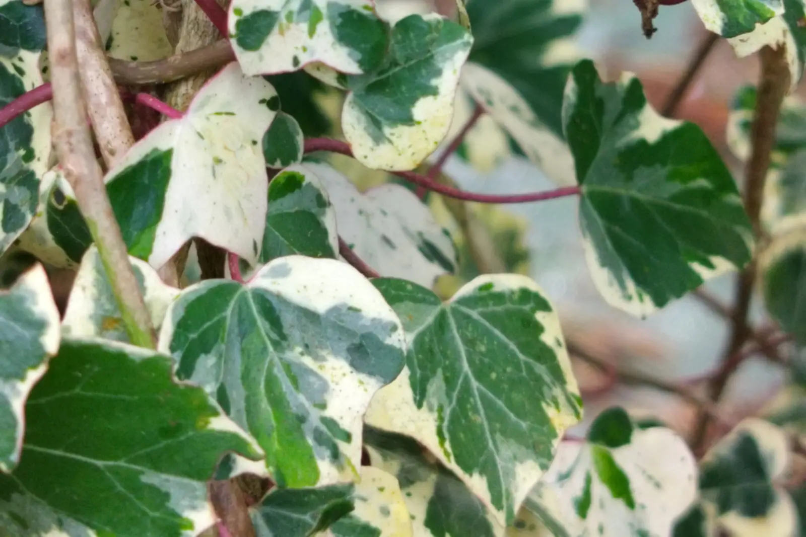 Ornamental ivy, Hedera helix ‘Teneriffe’, is a medium-growing, climbing plant with numerous branches.