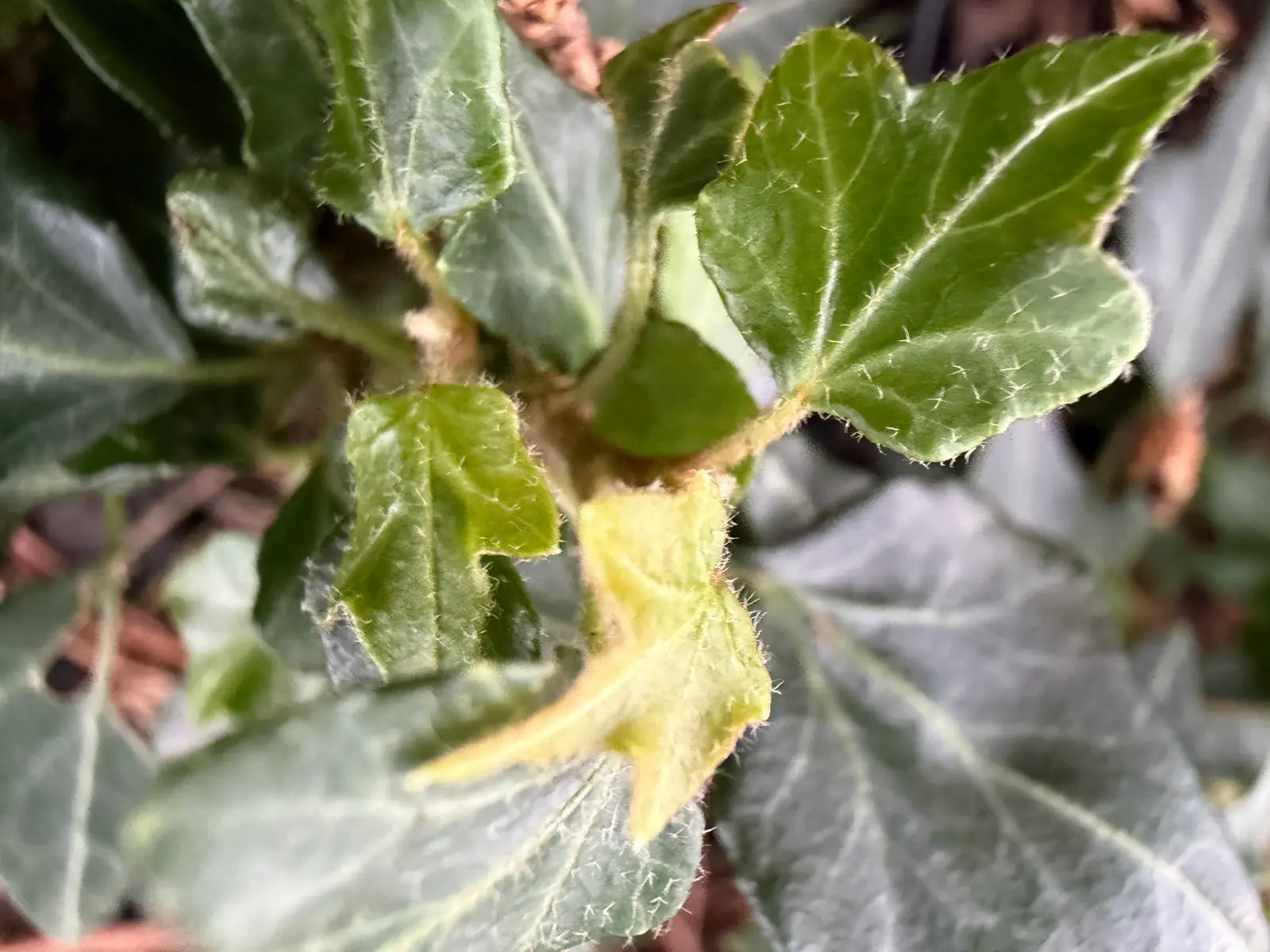 Ornamental ivy, Hedera helix ‘Tristan’, This is a very compact ivy with small bird's-foot leaves when young, then more or less peltate.
