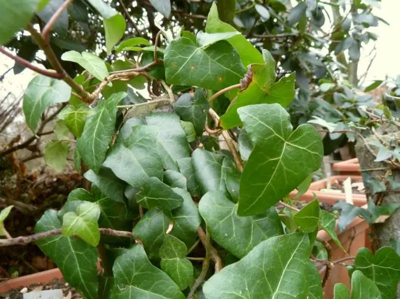 Iran ivy, Hedera pastuchovii ‘Lagodekhi’, Its foliage is shiny and lightly veined.