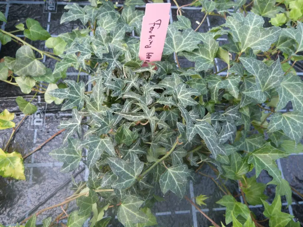 Sierklimop, Hedera helix ‘Forking Hell’, Hij valt op door zijn prachtige zilverkleurige adering.
