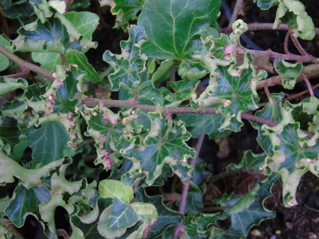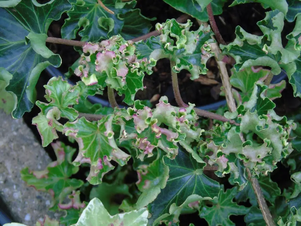 Le lierre d’ornement, Hedera helix ‘Frivolité frisé‘, est issu de ‘Ivalace’. Comparativement à ce dernier, son feuillage est un peu plus clair, avec de belles échancrures teintées de mauve qui frisent.
