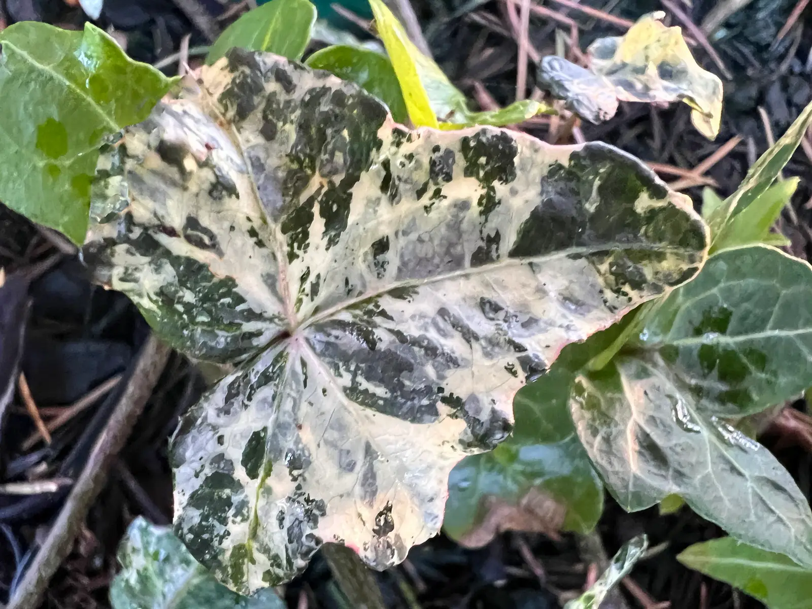 Le lierre d’ornement, Hedera helix ‘Gurcy’, est un très joli lierre panaché, avec de larges marbrures crème sur un fond vert foncé.
