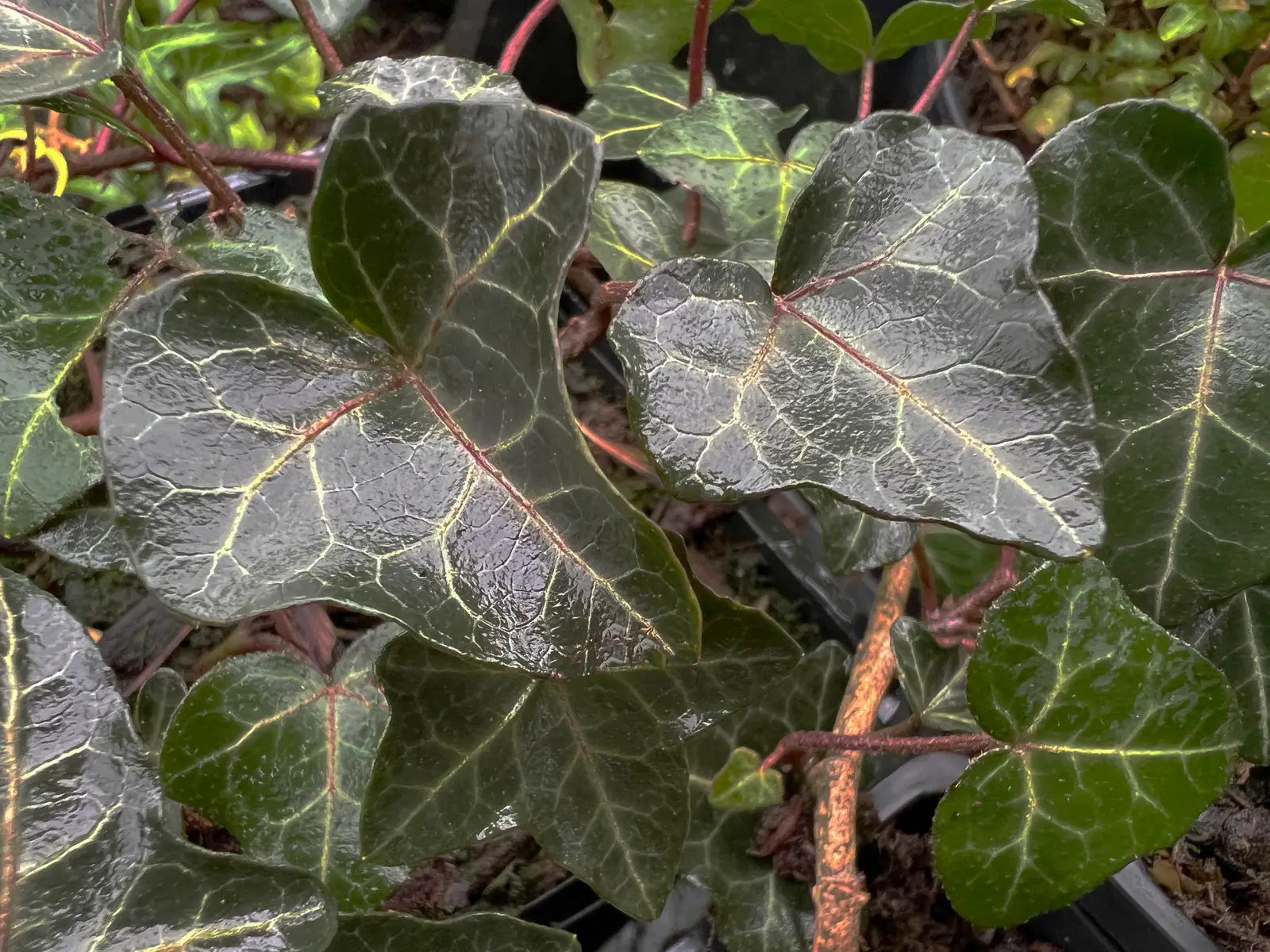 Le lierre des bois, Hedera helix ‘Manoir de Paimpol’, est proche du type, mais avec des feuilles plus petites et plus rondes, parcourues par de belles nervures.
