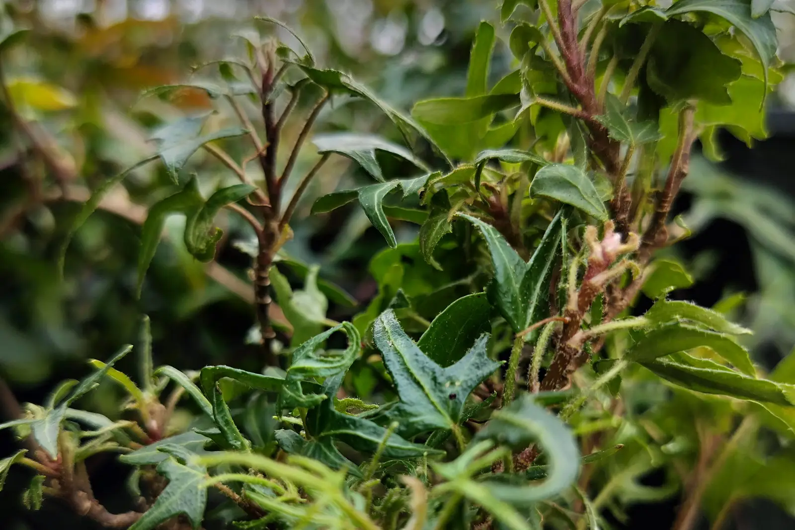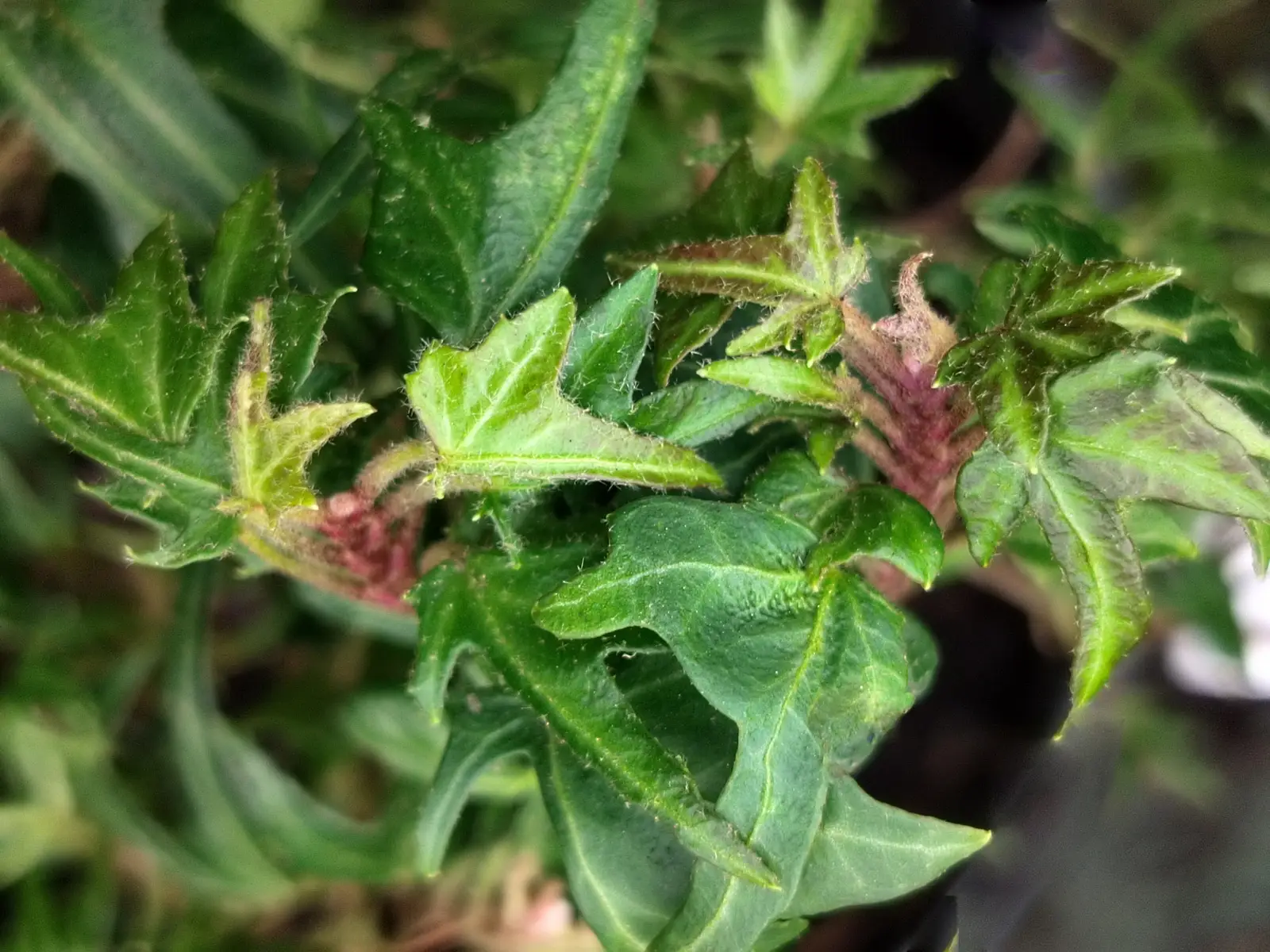 Lierre à petites feuilles en pattes d’oiseau, formant une jolie touffe compacte.