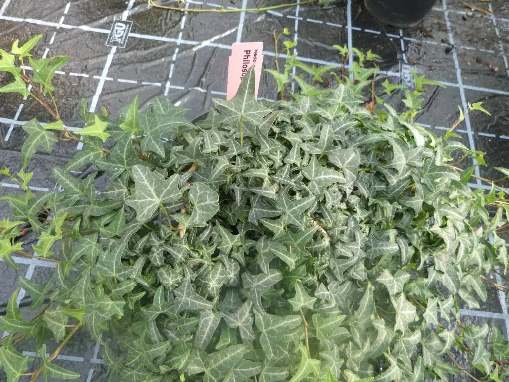 Le lierre d’ornement, Hedera helix ‘Philosophe’, est un lierre très branchu qui pousse lentement.